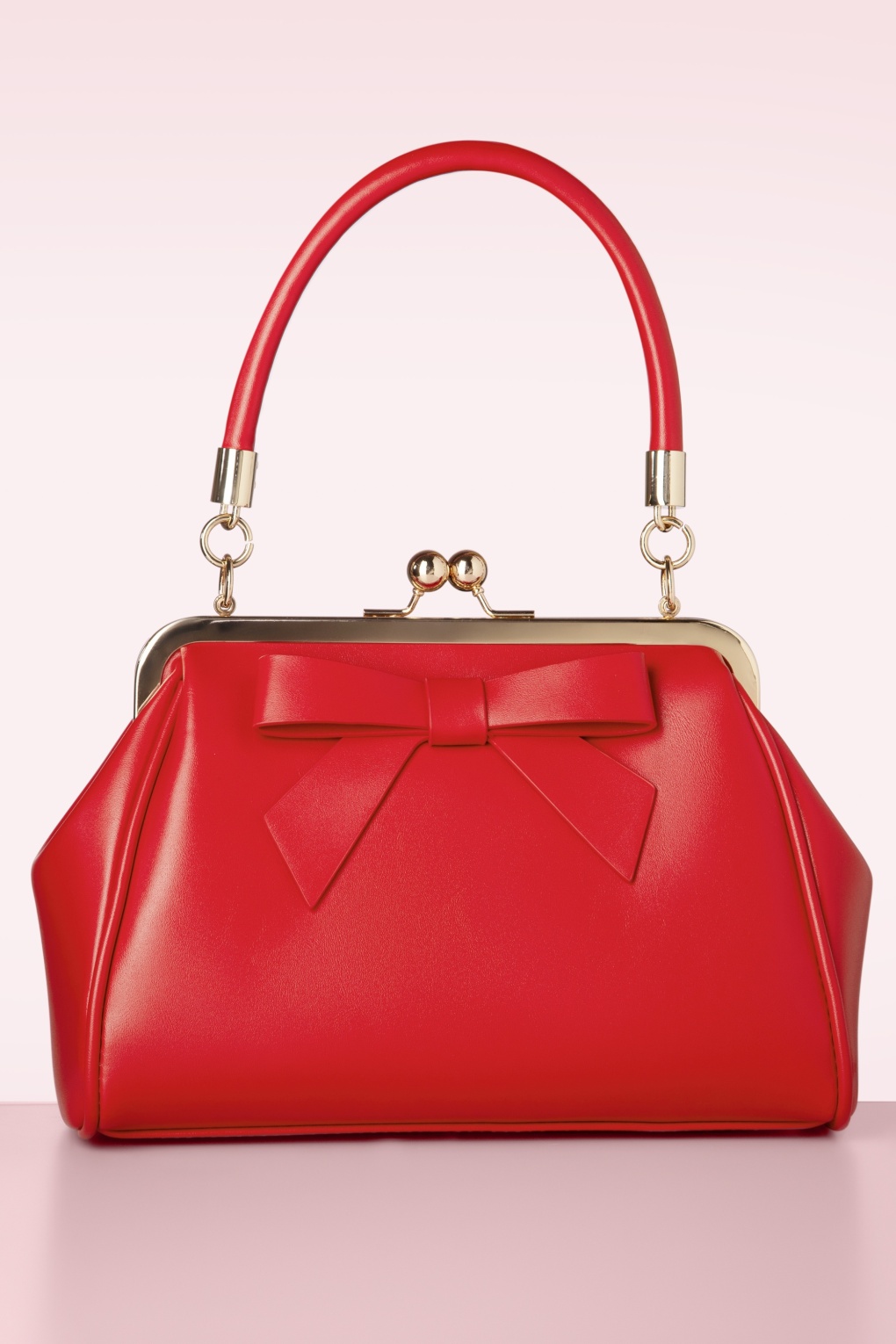 ”Just a daydream away!” Dit kleine zusje van de klassieke American Vintage bag heeft een opvallende goudkleurige metalen klipsluiting voor een echte vintage look en is uitgevoerd in lipstickrood mat imitatie leder afgewerkt met een schattige strik.  * Small sized * Klipsluiting * Binnenvak met 3 extra vakjes, waarvan 1 met rits * Afneembaar hengsel * Kan crossbody gedragen worden * Volledig gevoerd * Groot genoeg voor je telefoon, sleutels, en een kleine portemonnee