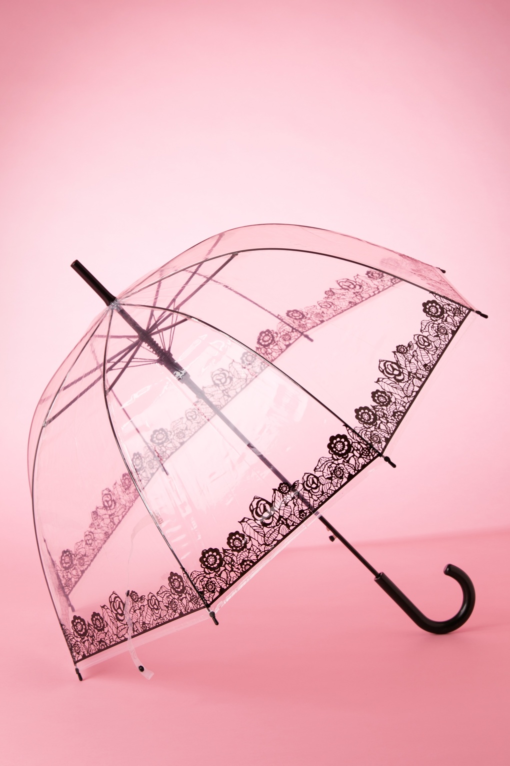 Handig en fabulous deze 60s Dentelle Flower Transparent Dome Umbrella, je ziet precies waar je loopt in de regen! Dit schattige exemplaar met zwarte bloemen zorgt ervoor dat jij de regen uit de lucht kijkt! Het transparante scherm is gemaakt van waterdicht polyester met een zwarte rand en is afgewerkt met een zwart kunststof handvat. De paraplu opent eenvoudig met één druk op de knop. I’m singin’ in the rain… looking fab as always!   * 100% waterdicht * Stevig handvat * Opent eenvoudig met één druk op de knop