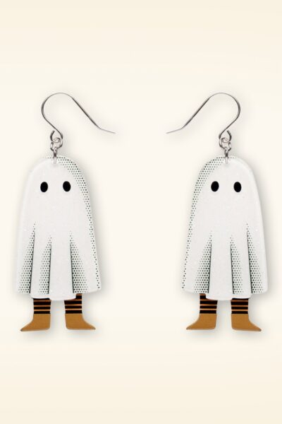 ”Sheets? Check. Spooky stance? Nailed it. This little ghost may be more adorable than alarming, but he’s giving it his best boo!”  * Online in Nederland, Duitsland en België exclusief bij Topvintage verkrijgbaar * Handgemaakt, handbeschilderd en uitgevoerd in verschillende lagen hars * Zilverkleurige haakjes * Nikkelvrij * Bij aankoop van 2 of meer items uit deze ”HAUNTED AT HEART” collectie ontvang je een surprise broche cadeau (zolang de voorraad strekt!) * Original design by Megan Roy