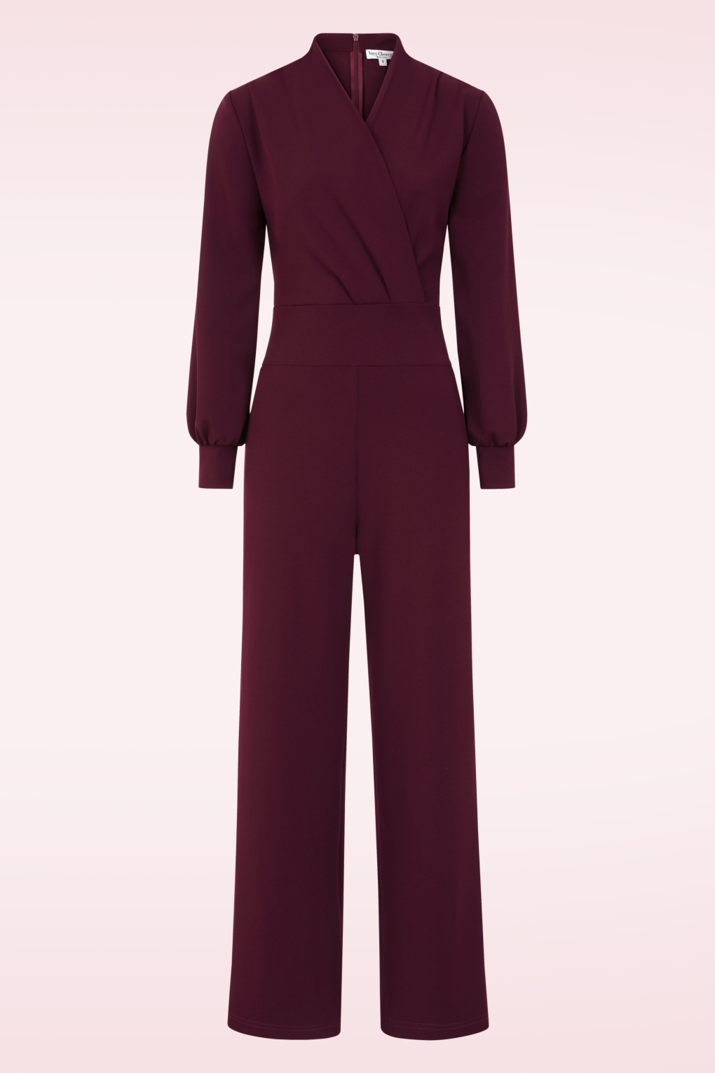 Wees een power vrouw in deze tijdloze jumpsuit! Ze is uitgevoerd in een soepele, stretchy auberginekleurige stof die heerlijk draagt en de look van vintage crêpe heeft. Dit iconische kledingstuk is perfect voor zowel een dag op kantoor als een avondje uit… een echte must-have!   * Vaste overslag * Lange pofmouwen met manchetten * Vaste strikbanden * Blinde rits aan de achterzijde * Lange, wijde pijpen (kunnen eenvoudig ingekort worden)