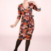 • Topvintage exclusive ~ Kamila floral pencil jurk in zwart en multi £ 69,95