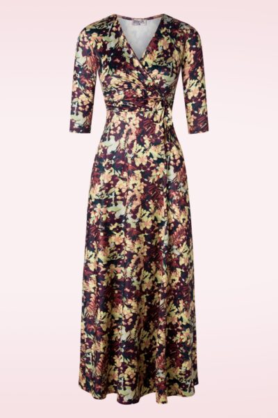 ”Petal perfection!” Fresia heeft een prachtige aansluitende overslag top, 3/4 mouwen en een flatterende geplooide tailleband met een decoratief strikje. Vanaf de taille gaat ze over in een chique lange maxi rok. Ze is uitgevoerd in een glad en licht glanzend, soepel en stretchy, slinky stofje in wijnrood en navy met een prachtige bloemenprint.  * Maxi jurk * Vaste overslag * Gevoerde top * 3/4 mouwen * Geplooide tailleband met vaste strikbandjes * Rok is gedeeltelijk gevoerd  * Geen rits of knopen; aantrekken en ready to go! * Reikt tot op de enkel bij een lengte van 1,70 m