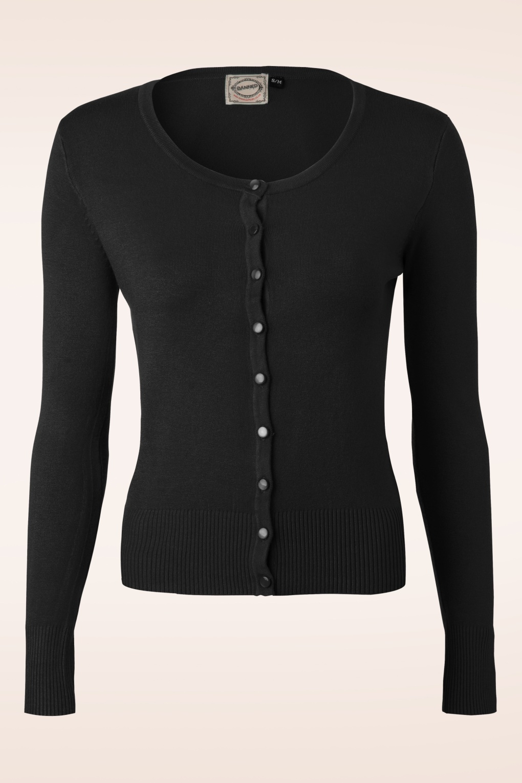 Een tijdloze klassieker en een must-have voor elk seizoen! Draag haar over onze retro jurken of stoer met een jeans: deze tijdloze, zwarte beauty is altijd goed 😉 Ze heeft een mooie ronde hals, lange mouwen en kleine glimmende zwarte knoopjes over de hele lengte. Uitgevoerd in een lekker stretchy, soepele, fijngebreide stof met ribboord langs de mouwen en onderrand voor een mooie pasvorm. Draag haar open, knoopje boven dicht of helemaal gesloten voor een andere look! * Ronde halslijn * Lange mouwen * Reeks knopen * Stretchy ribboorden * Lang genoeg om op een normale heupbroek te dragen * De afgebeelde accessoires en broek zijn niet verkrijgbaar in onze shop