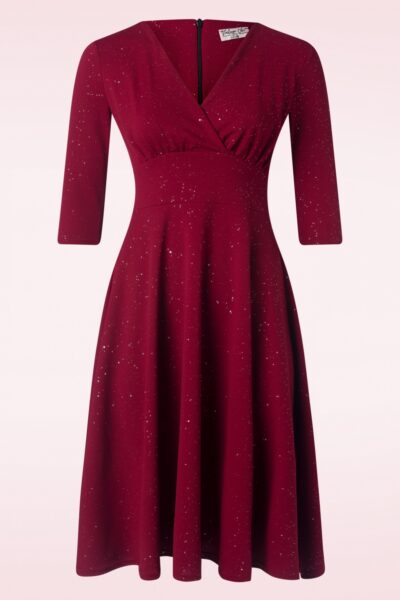 Glinda Glitter swing jurk in wijnrood