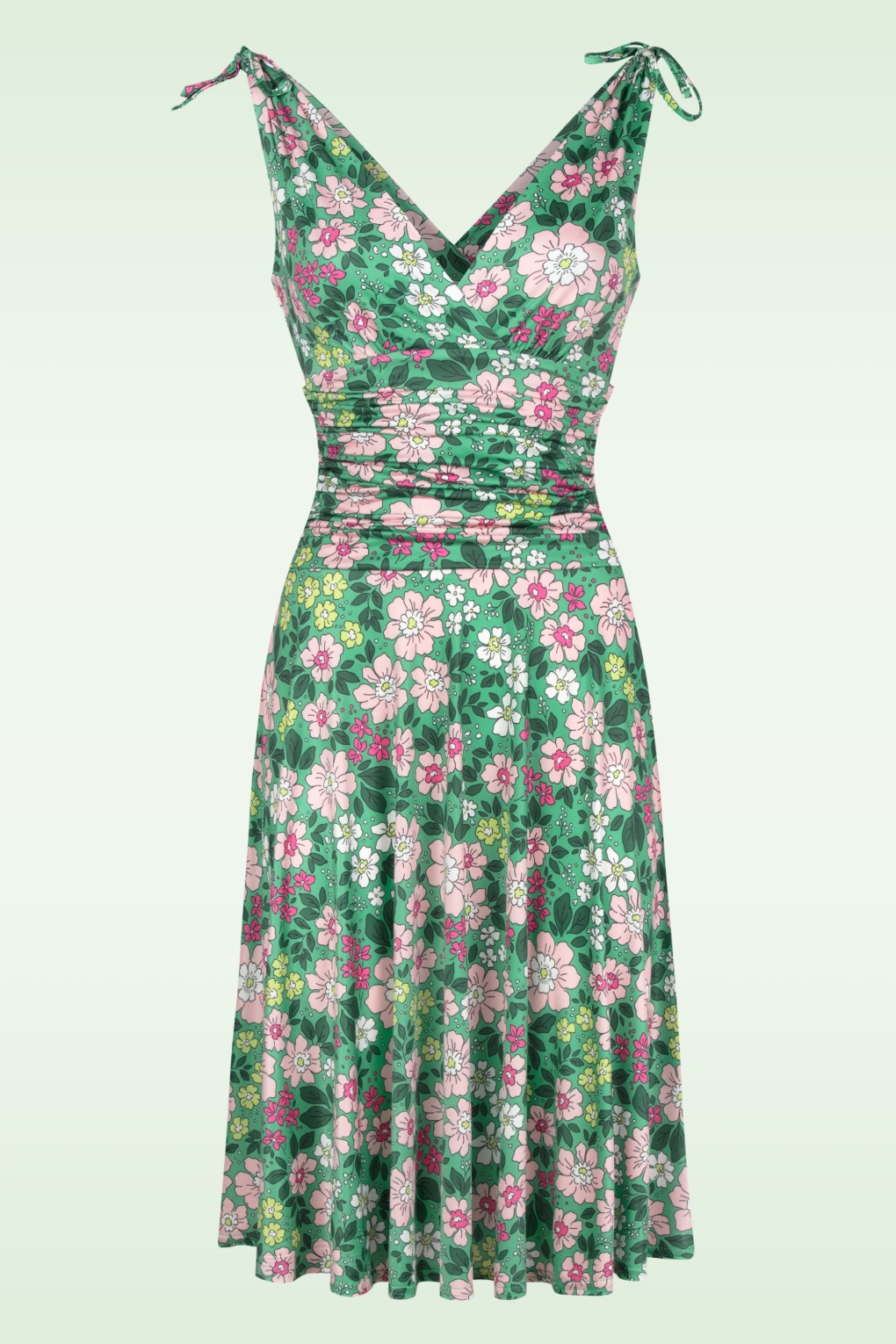 ”When in doubt, wear a floral dress!” In deze Grecian jurk blijf je niet onopgemerkt! De top heeft zowel aan de voor- als achterzijde een diepe V met mooie overslag waardoor je een sexy decolleté laat zien, oh la la! De licht geplooide cups lopen door in brede schouderbandjes met een speels strikdetail op de schouder. Uitgevoerd in een glad, soepel en stretchy, groen slinky stofje dat bezaaid is met een prachtige print van bloemen, die heerlijk comfortabel draagt.    * Zwierig model * Gevoerde top * Vaste overslag * Vaste strikbandjes * Geen rits of knopen; aantrekken en ready to go! * Valt bij een lengte van 1,70 m over de knie