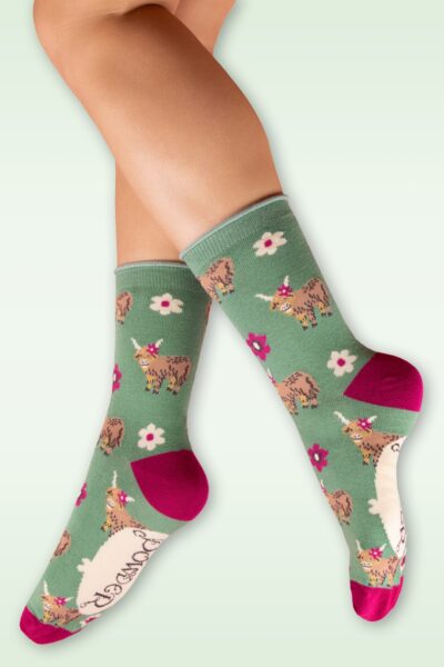 Wat is er nou leuker dan een paar vrolijke sokken aan je voetjes?! 😉 Enkelhoge sokken, uitgevoerd in een luxueuze zachte bamboemix. Maar wat ze zo bijzonder maakt is natuurlijk de schattige print van Schotse hooglanders en bloemetjes.   * Enkelhoge sokken * Stretchy * Zacht en warm