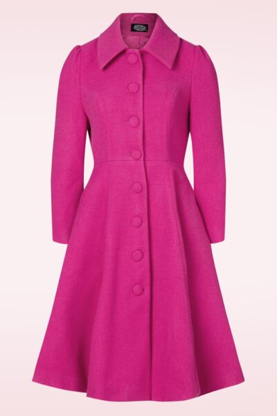 “Rule the cold in a coat this bold!” Met deze felroze swing jas maak je gegarandeerd een statement, waar je ook gaat. Ze heeft een elegant en vrouwelijk swingmodel met een puntige kraag en grote stoffen knopen. Uitgevoerd in een stevige maar soepele stofmix (zonder stretch) in een opvallende felroze tint, die je wintergarderobe meteen een vrolijke boost geeft. Stijlvol, speels en onweerstaanbaar chic! * Swing stijl * Puntige kraag * Knopenrij  * Volledig gevoerd * Voorzien van zakken! * Valt over de knie bij een lengte van 1,70 m * Exclusief bij Topvintage verkrijgbaar