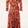 • Topvintage exclusive ~ Colette Floral swing jurk in kaki en multi £ 75,95
