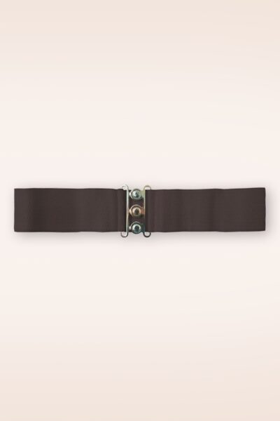 Deze Lauren Vintage stretchriem in donkerbruin is dé ideale riem om iedere vintage outfit helemaal mee af te maken! Gemaakt van breed donkerbruin elastiek met een zilverkleurige gesp die sluit in de taille. Draag haar in combinatie met onze swing jurken om je taille te accentueren voor een prachtig silhouet!   * Elastisch