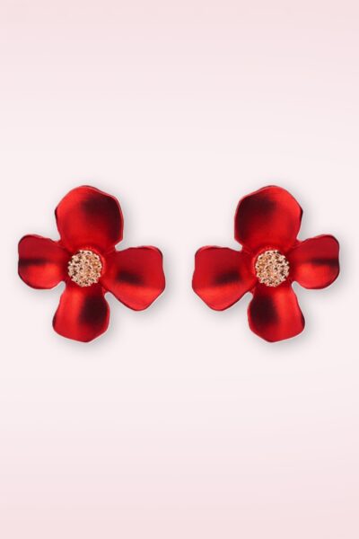 Bloemen? Yes, please! Deze lucite stijl, bloemvormige oorbellen zijn uitgevoerd in goudkleurig metaal en voorzien van bloemblaadjes in mat metallic rood. ”Flowers don’t tell, they show!”   * Stekers * Goudkleurig metaal  * Nikkelvrij