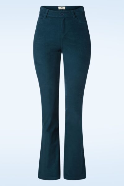 ”If you like it, wear it!” Vergeet het stoffige imago van ribfluweel… deze topper bewijst het tegendeel! Ze is uitgevoerd in een stevige katoenmix van ribfluweel in donkerblauw met een lichte stretch, die heerlijk draagt.   * High waist voor een super vrouwelijk silhouet * It has pockets! * Rits- en knoopsluiting voorzijde * Flared pijp