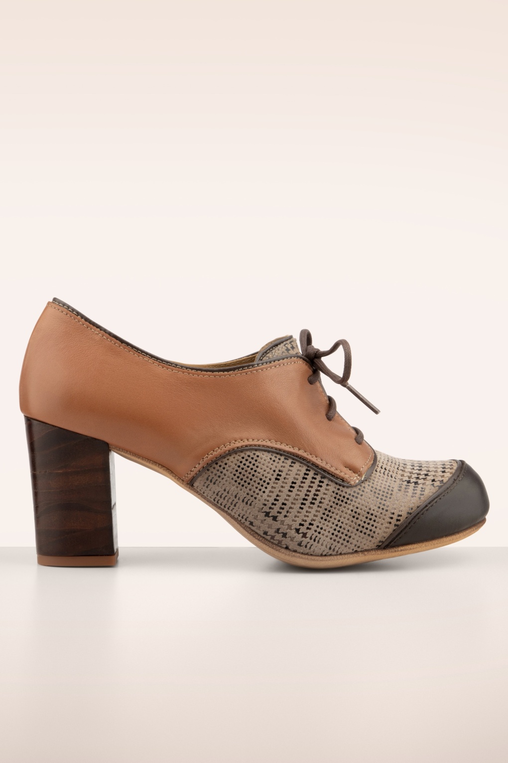 ”We are totally mad… uhm, mod over these shoes! Uitgevoerd in een combinatie van donker- en kastanjebruin leder en een beige suède gedeelte voorzien van een grafisch patroontje! De stevige blokhak in hout-look maakt het geheel helemaal af. Dankzij het voetbed voorzien van zacht foam, lopen ze ook nog als slofjes. Meer retro dan dit wordt het niet! 😉   * Shoe bootie met vetersluiting * Echt leder/suède * Rond neusje * Stevige blokhak * Comfortabel lederen voetbed * Anti-slip zool * Deze kleurcombinatie is speciaal ontworpen voor Topvintage