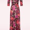 Topvintage exclusive ~ Davina floral maxi jurk in burgundy