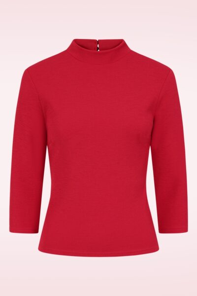 “Easy, versatile, and always flattering… your everyday top with a touch of refinement.” Mandi heeft een opstaand kraagje en 3/4 mouwtjes. Uitgevoerd in een stevige maar soepele en crêpe achtige, rode stof voorzien van een fijne stretch, waardoor ze een genot is om te dragen.    * Opstaand kraagje * 3/4 mouwen  * Lang genoeg om op een normale heupbroek te dragen