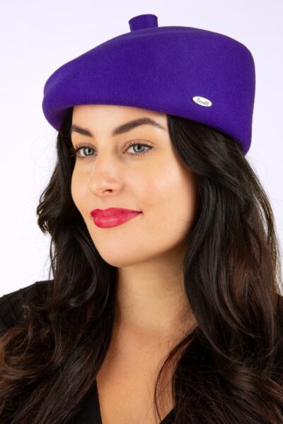 ”Hats have power. Hats can change you into someone else!” Een sophisticated Parisienne in dit geval 😉 Een stevige baret gemaakt van 100% paars wolvilt dat haar vorm behoudt en je kapsel niet platdrukt.  * Vilten knop detail bovenzijde * Niet verstelbaar * Lost & found label binnenkant * 100% wolvilt