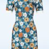 Topvintage exclusive ~ Ebony floral jurk in tealblauw en oranje