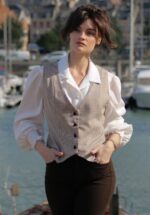 ”If I could live in this suit… I would!” Hallie is een echte aanwinst voor je garderobe! Dit mouwloze giletje heeft een classy business uitstraling, maar kan ook prima als single statement piece gedragen worden! Ze is uitgevoerd in een stevige maar toch soepele, met sateen gevoerde stofmix voorzien van een vleugje viscose (stretcht nauwelijks!) en met een prachtige pied de poule ruit in verschillende bruintinten.  * Gilet * Mouwloos * V-hals * Knoopsluiting * Decoratief riemdetail achterzijde  * Gevoerd in sateen * Maak je look compleet en combineer haar met de bijpassende Eliza pied de poule pantalon