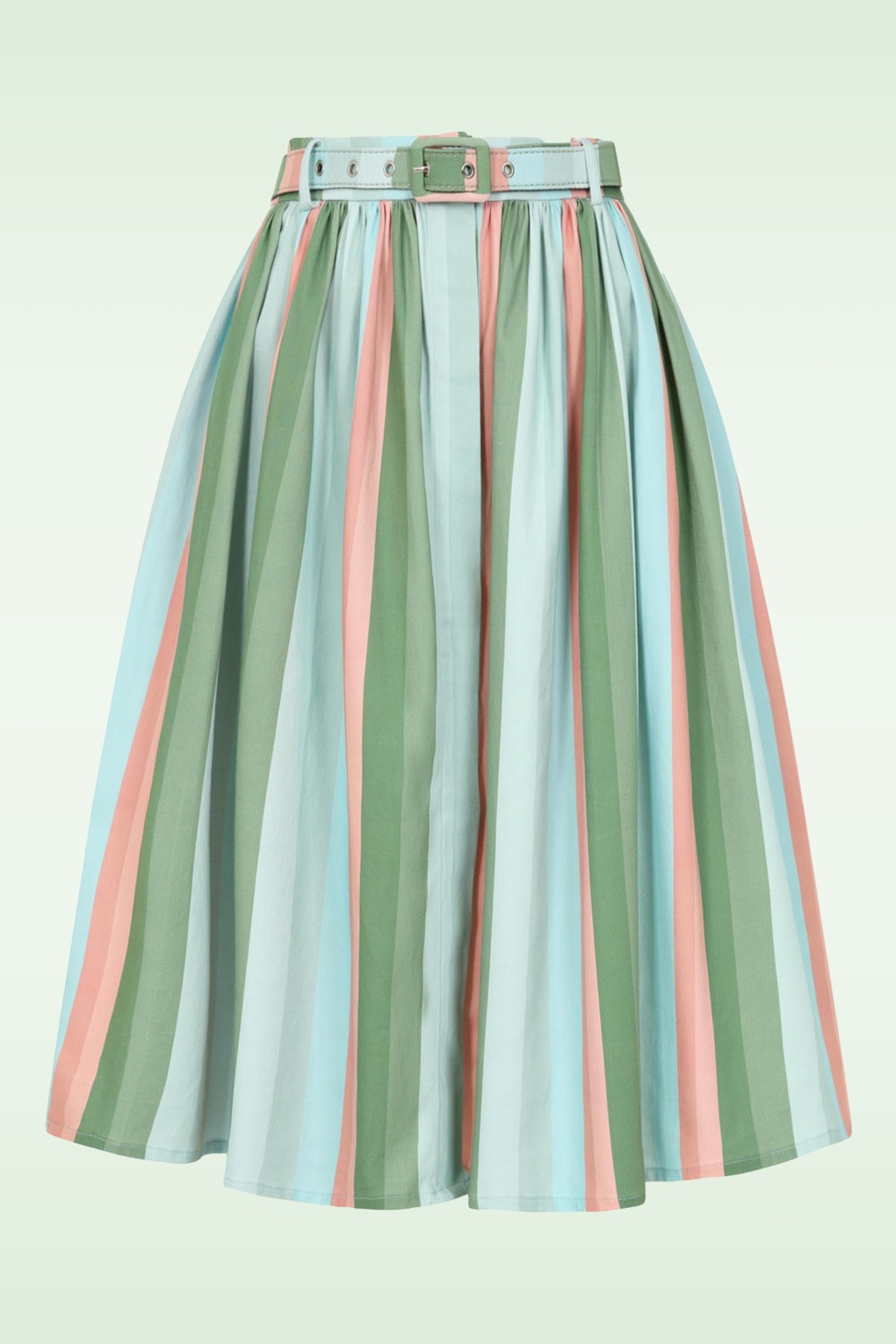 ”Colour me happy!” Deze beauty zwiert sierlijk met je mee bij elke stap en heeft een knopenreeks aan de voorzijde en handige steekzakken! Ze is uitgevoerd in een stevige, maar soepel vallende katoenmix voorzien van een kleurrijk streeppatroon.  * Full swing model: kan gecombineerd worden met een petticoat * Afneembare riem, voor een extra ‘snatched’ taille * It has pockets! * Knopenreeks voorzijde  * Valt bij een lengte van 1,70 m over de knie