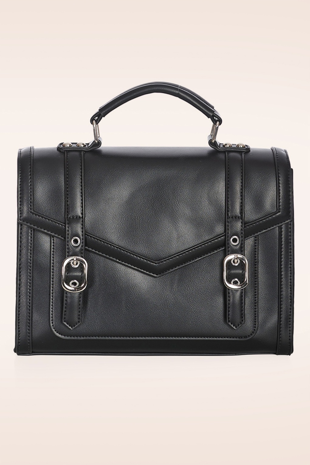 ”Did you get the message?!” Deze medium sized tas met klassieke uitstraling is afgewerkt met gespen op de voorzijde en uitgevoerd in hoogwaardig, zwart imitatieleder.   * Verborgen magneetsluiting * Ritssluiting * 2 extra vakjes, waarvan 1 met rits * Wordt geleverd met een los, verstelbaar hengsel * Kan crossbody gedragen worden * Groot genoeg voor je telefoon, portemonnee, sleutels en toilettasje