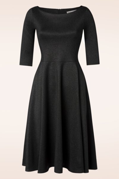 Voel je classy en feminine in Nina! Ze is uitgevoerd in een soepele en stretchy zwarte stof met een all-over subtiel glittertje.  * Boothals * Gevoerde top * 3/4 mouwen * Blinde rits achterzijde * Valt bij een lengte van 1,70 m over de knie * Let op; de kleur van het product op de video kan afwijken van de daadwerkelijke kleur van het product