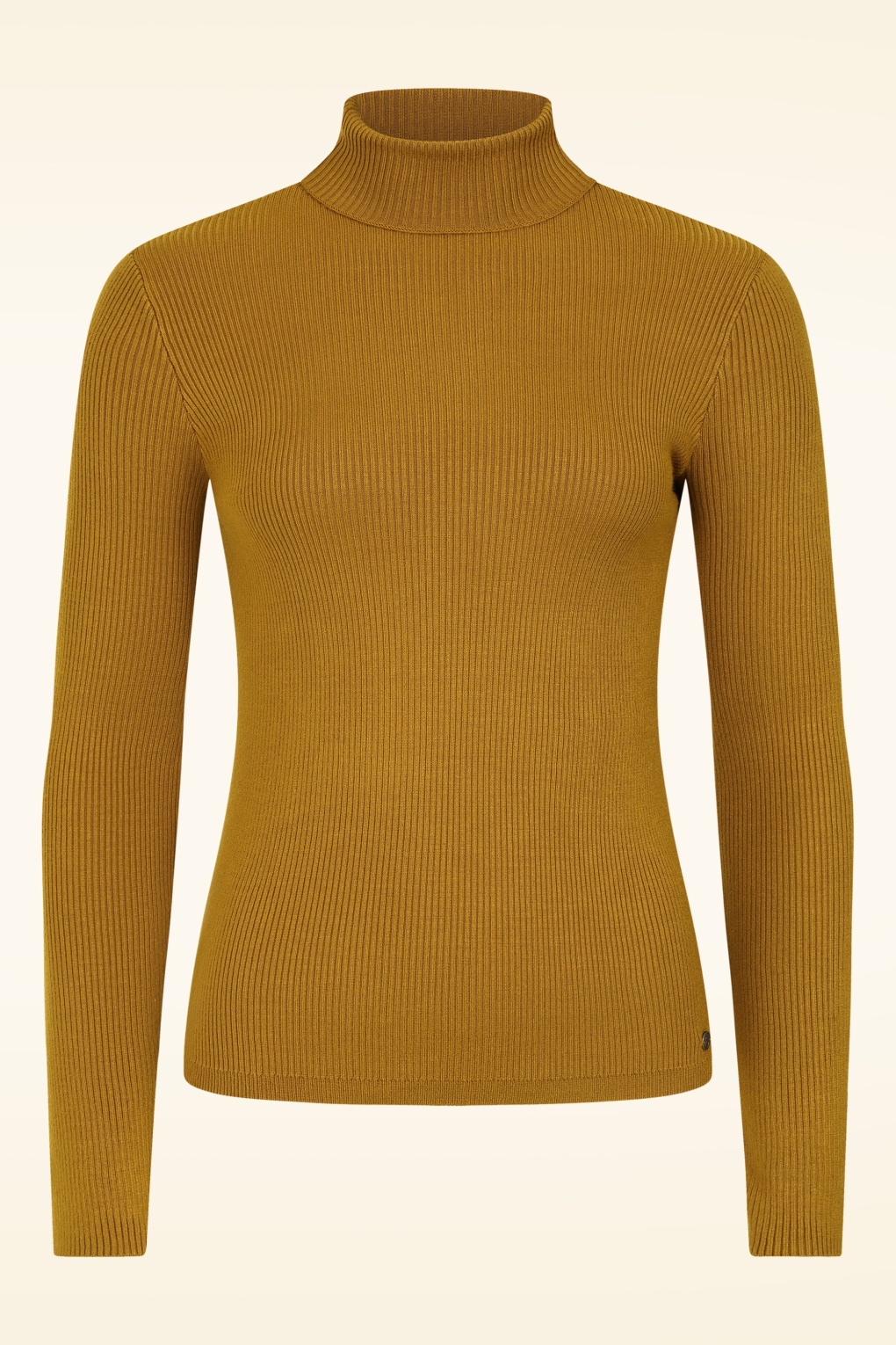 “Back to basics!” Regina voelt heerlijk zacht aan en draagt supercomfortabel. Ze is gemaakt van een fijngebreide, geribde bamboe viscosemix met stretch en komt in een warme okergele kleur.  * Col * Lange mouwen * Lang genoeg om op een normale heupbroek te dragen