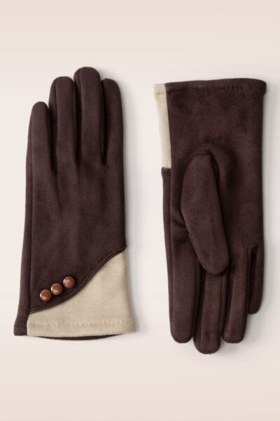 Elegant en ladylike! In de jaren 40 werden handschoenen meestal alleen gedragen tijdens formele gelegenheden zoals een bijeenkomst of een chique lunch. Tijden veranderen, want deze cuties kun je natuurlijk dragen wanneer je wilt ;-). Uitgevoerd in zacht en warm, bruin suèdine voor aangenaam warme handen, voorzien van beige details en ‘faux’ knopen.   * Suèdine * Stretchy * ‘Faux’ knopen * Zacht en warm