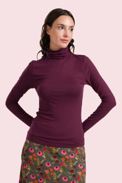 Go retro met deze fantastische Ruby top! Ze heeft een speels colkraagje, lange mouwen en is uitgevoerd in een soepele en stretchy, bordeauxrode EcoVero viscosemix. Je bent zeker klaar voor het najaar met Ruby in je kast!   * Colkraagje * Lange mouwen * Lang genoeg om op een normale heupbroek te dragen