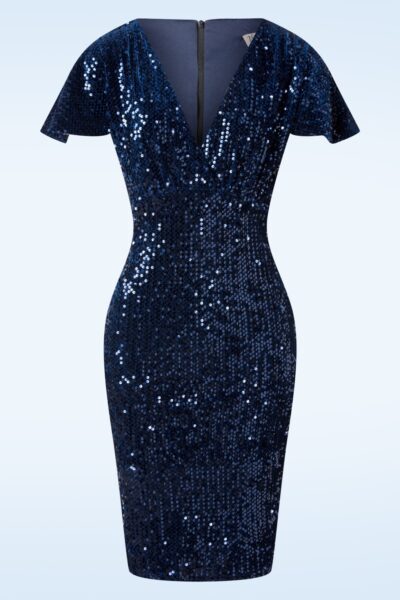 Sasha Sequin pencil jurk in navyblauw