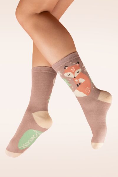 ”Happy feet, happy life!” Enkelhoge sokken, uitgevoerd in een luxueuze zachte bamboemix in mokka. Maar wat ze zo bijzonder maakt is natuurlijk de opvallende print van een schattig vosje.    * Enkelhoge sokken * Stretchy * Zacht en warm