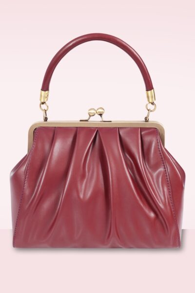 “Graceful pleats, timeless elegance.” Deze beauty heeft een opvallende goudkleurige metalen klipsluiting voor een echte vintage look. Uitgevoerd in geplooid dieprood imitatieleder met een los, verstelbaar hengsel zodat je haar ook speels om je schouder kunt hangen.  * Medium sized * Klipsluiting * Binnenvak met 3 extra vakjes, waarvan 1 met rits * Afneembaar hengsel * Kan crossbody gedragen worden * Volledig gevoerd * Groot genoeg voor je telefoon, sleutels, en portemonnee