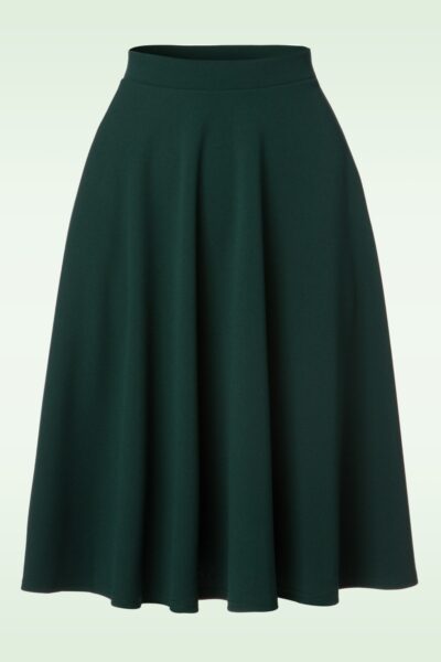 Dagje kantoor, shoppen of een avondje uit… deze 50s Sheila Swing Skirt in Forest Green is jouw sidekick! Geschikt voor iedere gelegenheid dankzij haar classy en sophisticated uitstraling maar ook door haar héérlijk draagcomfort! Deze beauty wordt hoog in de taille gedragen waardoor je een prachtig zandloper figuur krijgt, oh la la. Uitgevoerd in een soepel vallende, stretchy, donkergroene stof die elegant met je mee beweegt. All day, every day, Sheila all the way!   * Full swing * Zijwaartse steekzakken * Geen rits of knopen * Stunning Rachel Jensen is 1,66 m * De afgebeelde pumps en accessoires zijn niet verkrijgbaar in onze shop * Let op; de kleur van het product op video kan afwijken van de daadwerkelijke kleur van het product
