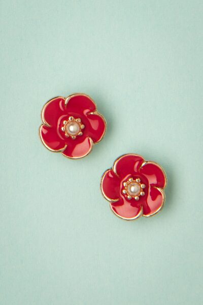 Home > 50s > Small Rose oorbellen in lipstickrood