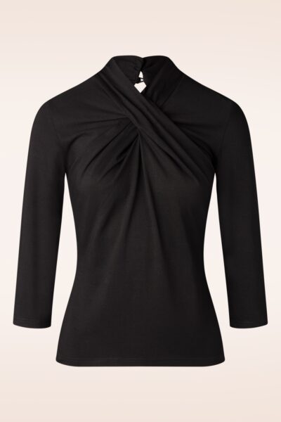 Je favoriete nieuwe top dit seizoen?! Dat is zonder twijfel deze 50s Sophia Evening Jersey Top in Black! Een prachtige top met hoge, iets opstaande hals, een sierlijk overslag detail en 3/4 mouwen. Uitgevoerd in een soepele, zwarte katoen met een heerlijke stretch voor een perfecte pasvorm. Spice it up or keep it classy, kunnen we niet allemaal een beetje “Sophia” in ons leven gebruiken?   * Hoge halslijn met iets opstaande kraag * 3/4 mouwen * Keyhole met knoopje achterzijde * Lang genoeg om op een normale heupbroek te dragen