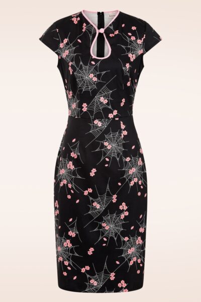 Home > Rockabilly > Spiderblossom Pencil jurk in zwart