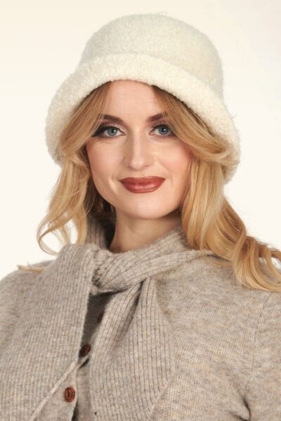 ”Hats off to your fashion sense!” 😉 Deze bucket hat is uitgevoerd in een zachte en warme, fuzzy ivoorwitte stof.    * Zacht en warm
