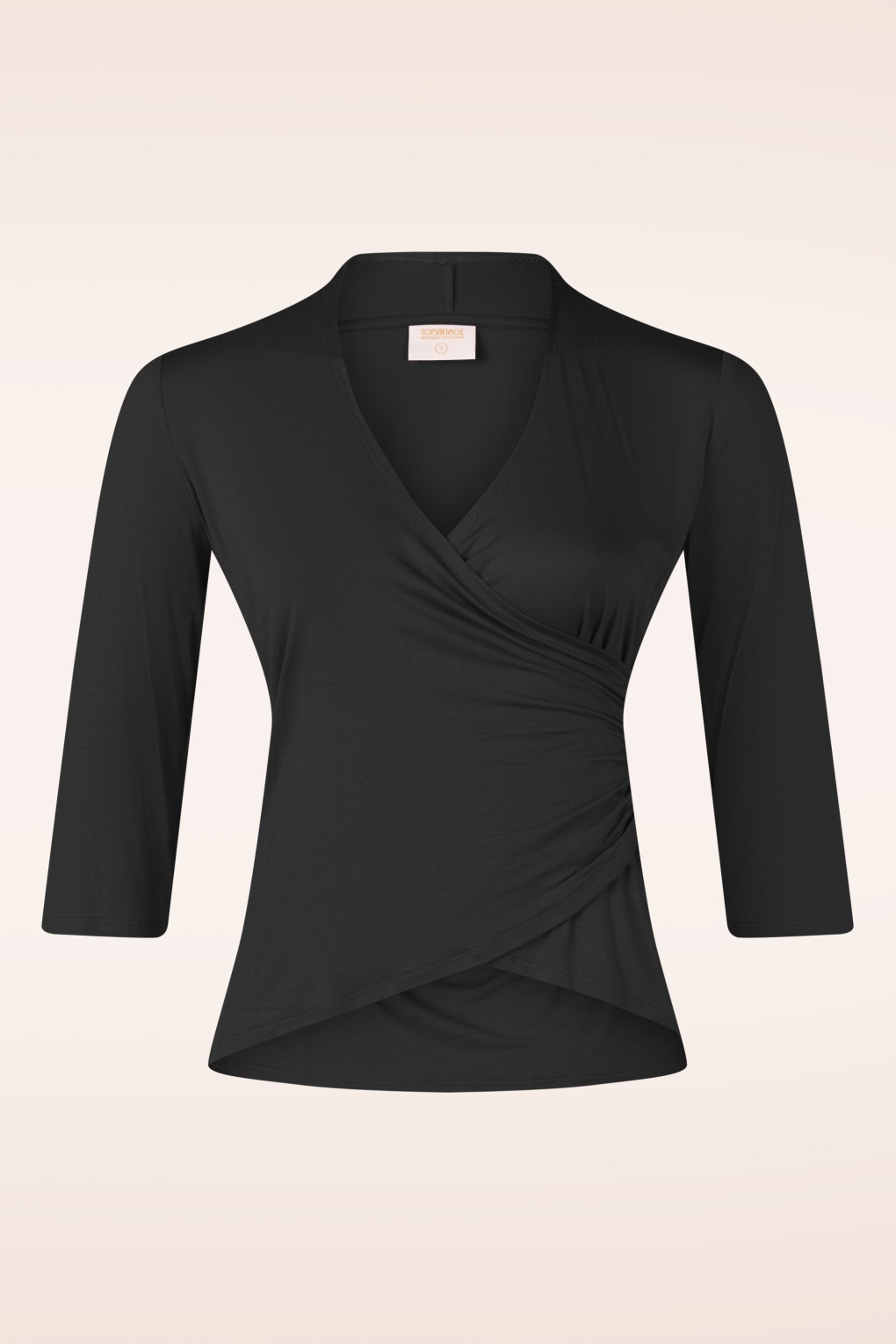 ”Repeat after me: I deserve Darla!” Ze is door onze eigen in-house designers ontworpen en exclusief bij Topvintage verkrijgbaar! Darling Darla is super veelzijdig en ontzettend flatterend door de vaste, geplooide overslag. Ze is uitgevoerd in een zachte en soepele zwarte viscosemix met een fijne stretch waardoor ze heerlijk draagt. ”Every woman needs a good basic!”   * V-halslijn * Vaste overslag * Niet gevoerd * 3/4 mouwtjes * Lang genoeg om op een mid-waist broek of rok te dragen * Gorgeous Melisssa is 1,78 m * Exclusief bij Topvintage verkrijgbaar
