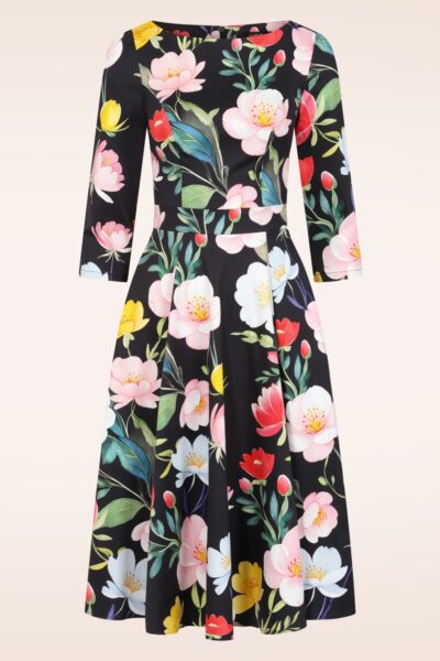 Be the first to review “Topvintage exclusive ~ Twilight Garden swing jurk in zwart en multi” Cancel reply