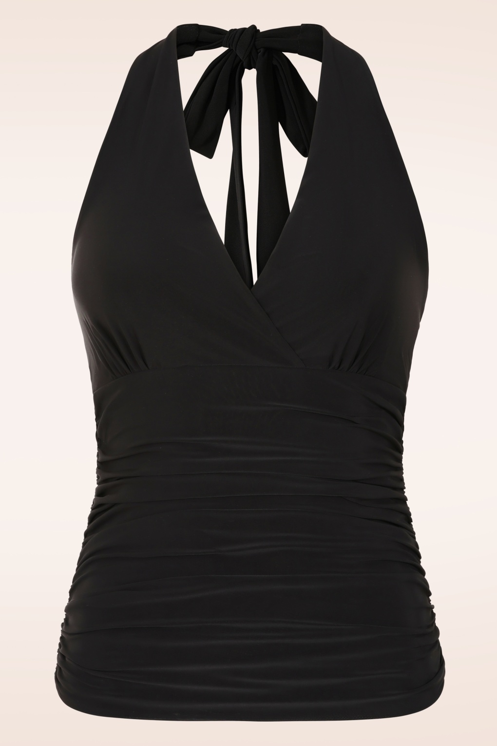 “Sleek, chic, and effortlessly captivating.” Deze halter beauty is voorzien van vaste strikbanden en plooitjes in de taille die zorgen voor een prachtig vrouwelijk silhouet. Ze is volledig gevoerd voor extra comfort en uitgevoerd in een stretchy, slinky en licht glanzende zwarte stof die niet alleen elegant oogt, maar ook heerlijk draagt.   * Haltertop * Volledig gevoerd  * Flatterende plooitjes in de taille * Lang genoeg om te dragen op een high-waist of mid-waist broek * Exclusief bij Topvintage verkrijgbaar