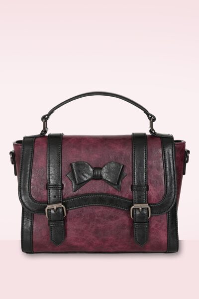 “Voyage into vintage sophistication.” Deze tas is uitgevoerd in bordeauxrood en zwart imitatie leder, afgewerkt met een strikdetail, een kort hengsel en een lang afneembaar hengsel waardoor je haar op veel manieren kunt dragen.    * Verborgen magneetsluiting * Ritssluiting * Binnenvak met 3 extra vakjes, waarvan 1 met rits * Wordt geleverd met een los, verstelbaar hengsel * Kan crossbody gedragen worden * Groot genoeg voor je telefoon, portemonnee en je sleutels