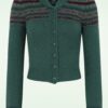The Fair-est Isle Wool gebreide cardigan van wol in petrolgroen