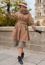 “A tribute to timeless femininity; where soft tailoring meets the romance of Parisian winters.” Deze Sadie A-lijn mantel uit de nieuwe collectie is geïnspireerd op de extraordinaire Marie-Louise Carven; Een baanbrekende Franse couturière uit de jaren 40 en 50! Ze heeft visgraat accenten, een oversized kraag die hooggesloten gedragen kan worden, lange mouwen, een riem om je taille (eventueel) te accentueren en handige zakken aan de voorzijde. Uitgevoerd in stevig maar soepel en super warm (100%) wol in zand, houdt ze je heerlijk warm. * A-lijn * 100% wol! * Gevoerd * Hoge kraag * Lange mouwen * Functionele knopenreeks voorzijde * Afneembare riem * Zakken voorzijde * Valt bij een lengte van 1,70 m boven de knie