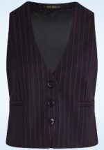 “From boardroom to standout!” Meestal wordt dit klassieke item geassocieerd met een driedelig pak, maar dit gilet kan ook prima als single statement piece gedragen worden. Cissy is uitgevoerd in een zachte, soepele nachtblauwe stofmix met een vleugje viscose en een rode pinstripe. * Gilet * Mouwloos * 2 ‘faux’ paspelzakjes * Knoopsluiting * Gevoerd * Maak je look compleet en combineer haar met de bijpassende Pia Pinstripe pantalon in nachtblauw