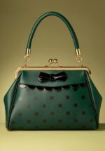 Cute, cuter, cutest… anders dan dit kunnen we deze 50s Crazy Little Thing Bag in Green niet omschrijven! Echt een (polka)dotje deze stunner! Deze groene tas heeft een opvallende goudkleurige metalen klipsluiting voor een echte vintage look. Uitgevoerd in donkergroen ‘faux’ leder met een print van zwarte polkadots en afgewerkt met een ‘faux’ lakleder strikje en geschulpte biesjes. Deze cutie wordt bovendien geleverd met een los, verstelbaar hengsel zodat je haar ook speels om je schouder kunt hangen. Je kunt er ook nog genoeg spulletjes in kwijt, dus wij zien geen enkele reden waarom je dit schatje niet gelijk zou willen bestellen. Slechts één klik… en deze vintage treasure kan van jou zijn 😉 * Klein model * Klipsluiting * Binnenvak met 3 extra vakjes, waarvan 1 met rits * Afneembaar hengsel * Kan crossbody gedragen worden * Volledig gevoerd * Groot genoeg voor je telefoon, sleutels en een klein toilettasje