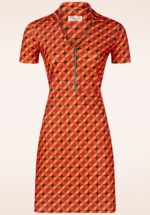 Daisy Geo Retro jurk in oranje en zwart