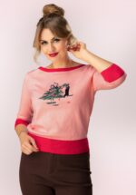 Go retro met deze 60s Debbie Cat Striped Sweater in Mauve Pink! Online in Nederland, Duitsland en Frankrijk exclusief verkrijgbaar bij TopVintage! Een blik op dit truitje is genoeg om ons hartje sneller te laten kloppen, me-ow… Ze heeft een klassieke snit met een ronde halslijn, gestreepte 3/4 mouwen en stretchy ribboord voor een mooie pasvorm. Uitgevoerd in een heerlijk soepele, fijngebreide, stretchy, mauve roze 100% katoen voorzien van een schattig ivoorkleurig kattenkopje. In één woord CAT-TAS-TIC! * Ronde halslijn * 3/4 mouwen * Stretchy ribboord * Lang genoeg om op een normale heupbroek te dragen