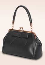”Just a daydream away!” Dit kleine zusje van de klassieke American Vintage bag heeft een opvallende goudkleurige metalen klipsluiting voor een echte vintage look en is uitgevoerd in zwart mat imitatie leder afgewerkt met een schattige strik. * Small sized * Klipsluiting * Binnenvak met 3 extra vakjes, waarvan 1 met rits * Afneembaar hengsel * Kan crossbody gedragen worden * Volledig gevoerd * Groot genoeg voor je telefoon, sleutels, en een kleine portemonnee