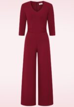 “One piece, endless temptation.” Darlene heeft een elegante v-halslijn, 3/4 mouwen en lange wijde pijpen. Ze is uitgevoerd in een stevige, maar soepel vallende en stretchy, crêpe achtige wijnrode stof, die heerlijk comfortabel draagt. * 3/4 mouwen * V-halslijn * Vast striklint in de taille * Blinde rits achterzijde * Lange, wijde pijpen