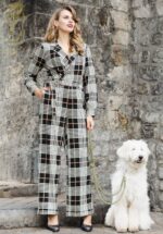 ”One piece wonder!” Deze zwarte jumpsuit met tartan print heeft een overslag, puntig kraagje en lange mouwen met manchetten. Ze is uitgevoerd in een iets dikker, stretchy stofje dat heerlijk draagt. * Jumpsuit * Overslag * Puntige reverskraag * Knoop- en ritssluiting voorzijde broek gedeelte * Elastische taille * Vaste riem, voor een extra ‘snatched’ taille * It has pockets! * Lange, wijde pijpen met pintuck naad * StayFresh coating! * Let op; de kleur van het product op de video kan afwijken van de daadwerkelijke kleur van het product * Melissa is 1,78 m