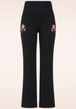 “Flared in flow, blossomed in detail; jersey comfort with floral grace.” Deze heerlijke en comfy flared broek is uitgevoerd in een iets dikkere, stretchy, zwarte bio katoenmix, voorzien van geborduurde bloemen op heuphoogte. * Flared * Stretchy en comfy * Elastische tailleband * It has pockets!