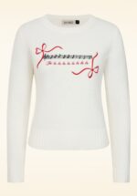 “Turning up the cozy and cranking out the carols; falalala fabulous!” Dit truitje heeft een hoge ronde halslijn, lange mouwtjes en is uitgevoerd in een zachte, soepele en stretchy, fijngebreide stofmix (met een vleugje wol) in ivoor met een geborduurd ‘kerst’ patroon van muzieknoten en strikjes die heerlijk comfortabel draagt. * Lange mouwen * Stretchy ribboord * Lang genoeg om op een normale heupbroek te dragen
